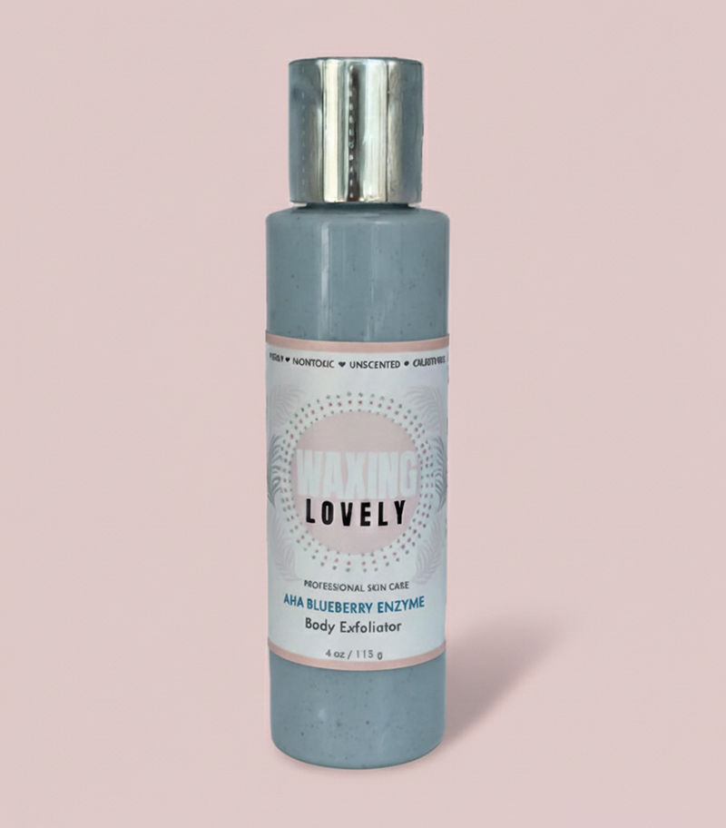 AHA Blueberry Enzyme Body Exfoliator breaks the skin's surface tension and beyond to dissolve dead skin cells, impurities, and excess sebum preventing buildups, ingrown hair, breakouts, and it evens out the skin texture. Made with Blueberry Enzyme, one of nature's most potent antioxidants, alpha hydroxy acids (AHA) enzymes derived from fruits, and jojoba wax beads to effectively deep cleanse the skin, unclog pores stimulating the circulation and the cell turnover, and rejuvenating the skin.